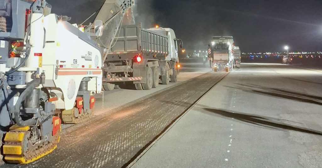 Entre as melhorias, está a restauração completa do pavimento asfáltico da Pista de Pouso e Decolagem (PPD), que possui 2.300 metros de extensão entre as cabeceiras 17 e 35, e também das taxiways, vias que permitem o deslocamento das aeronaves entre a pista e os pátios. Esse processo está sendo fundamental para recuperar a integridade das superfícies, aumentar sua durabilidade e resistência, além de garantir condições perfeitas para a movimentação das aeronaves.